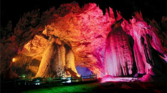 梅山龍宮位于湖南省婁底市新化縣資水河畔,是一個(gè)集溶洞、峽谷、峰林、絕壁、溪河、漏斗、暗河等多種喀斯特地質(zhì)地貌景觀于一體的大型溶洞群,有九層洞穴,探明長(zhǎng)度2870余米,已開(kāi)發(fā)游覽路線1896米,其中包括長(zhǎng)466米世界罕見(jiàn)的神秘地下河。整個(gè)洞府分為龍宮迎賓、碧水蓮宮、玉皇天宮、龍宮仙苑、龍宮風(fēng)情、龍鳳呈祥六大景區(qū)。