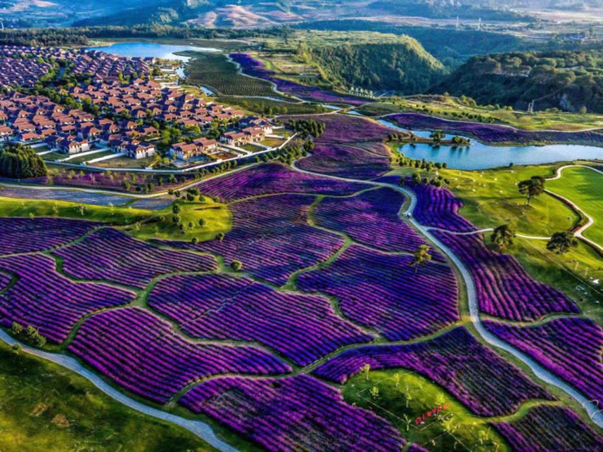 - 特色:百畝馬鞭草、繡球花、百合花田,設鋼琴藝術裝置、秋千等互動設施。