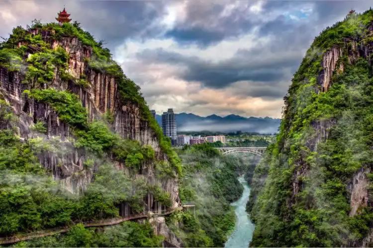 - 懸崖棧道:沿絕壁修建,可俯瞰阿蓬江蜿蜒,遠(yuǎn)眺黔江城與峽谷綠意交融,感受“城在峽谷上,峽谷在城中”的奇景。
