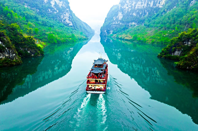 游船體驗:乘坐游船游覽烏江畫廊,欣賞S形河道與奇峰異石。