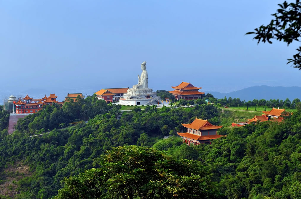 廣東觀音山國家森林公園,位于廣東省東莞市樟木頭鎮(zhèn)筆架山路190號(hào)觀音山,地處珠江三角洲東南部,東莞市東部,樟木頭鎮(zhèn)中心邊緣,距鎮(zhèn)中心1.5千米,距離東莞市區(qū)大約40千米,總面積657.18公頃。廣東觀音山國家森林公園最高點(diǎn)為耀佛嶺,海拔566米,觀音山海拔488米。屬丘陵山地地貌。所在地區(qū)樟木頭鎮(zhèn)屬南亞熱帶海洋性季風(fēng)氣候區(qū)。森林覆蓋率達(dá)92%以上,常見植物種類有73科199種。其中屬國家保護(hù)的動(dòng)植物22種,瀕危植物包括粘木、白桂木、蘇鐵蕨、土蠶霜、金茶花、野茶樹和野生龍眼等。有獸類、飛鳥類、甲殼類、昆蟲類等300多種動(dòng)物。廣東觀音山國家森林公園內(nèi)建成了以正門樓、觀音廣場、觀世音菩薩法像、仙宮嶺、普渡溪、感恩湖、回音壁、怡心亭、慈云閣、先人石壘、古樹博物館、國際會(huì)展中心、仙泉游泳館等20余處景點(diǎn);內(nèi)設(shè)6.8千米的吉祥路(佛光路),既可觀景也可休閑健身;還有飛天威亞、龍鳳天梯、冰雪樂園、山地越野車等娛樂項(xiàng)目,是親子家庭放松休閑、寓教于樂的自然課堂。