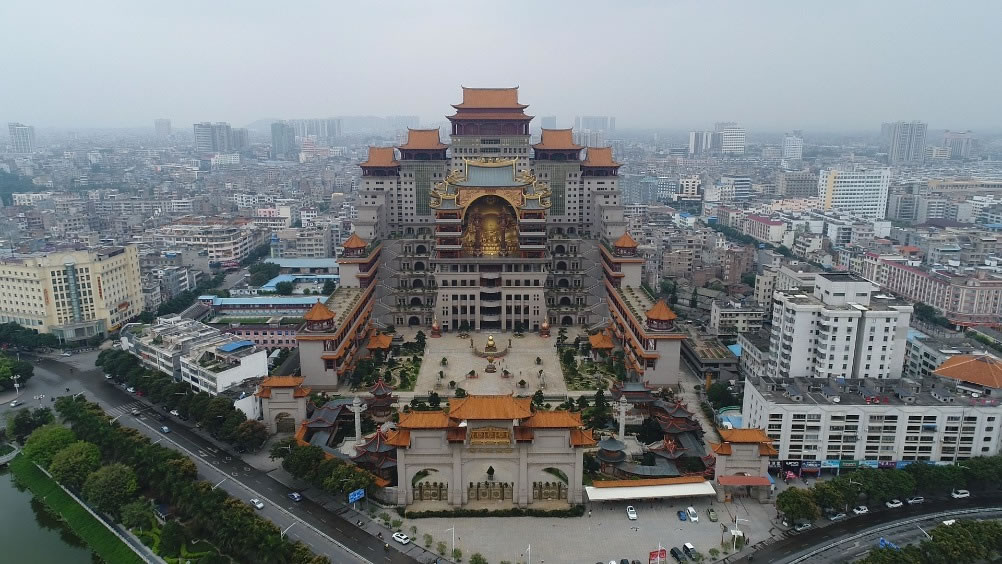 - 地理位置:廣西玉林市玉州區(qū)江濱路461號(hào),國(guó)家AAAA級(jí)景區(qū),占地70畝,建筑面積14萬平方米,主樓21層高108米,被譽(yù)為“玉林版布達(dá)拉宮”,集雕塑藝術(shù)、民俗文化、珍寶展示于一體。