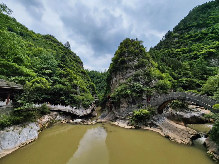 - 魚竅峽:峽谷內(nèi)潭水相連,瀑布迭次,如“龍?zhí)队吃?rdquo;“珍珠串”等景觀,夏季可賞飛瀑流泉,秋季紅葉漫山。