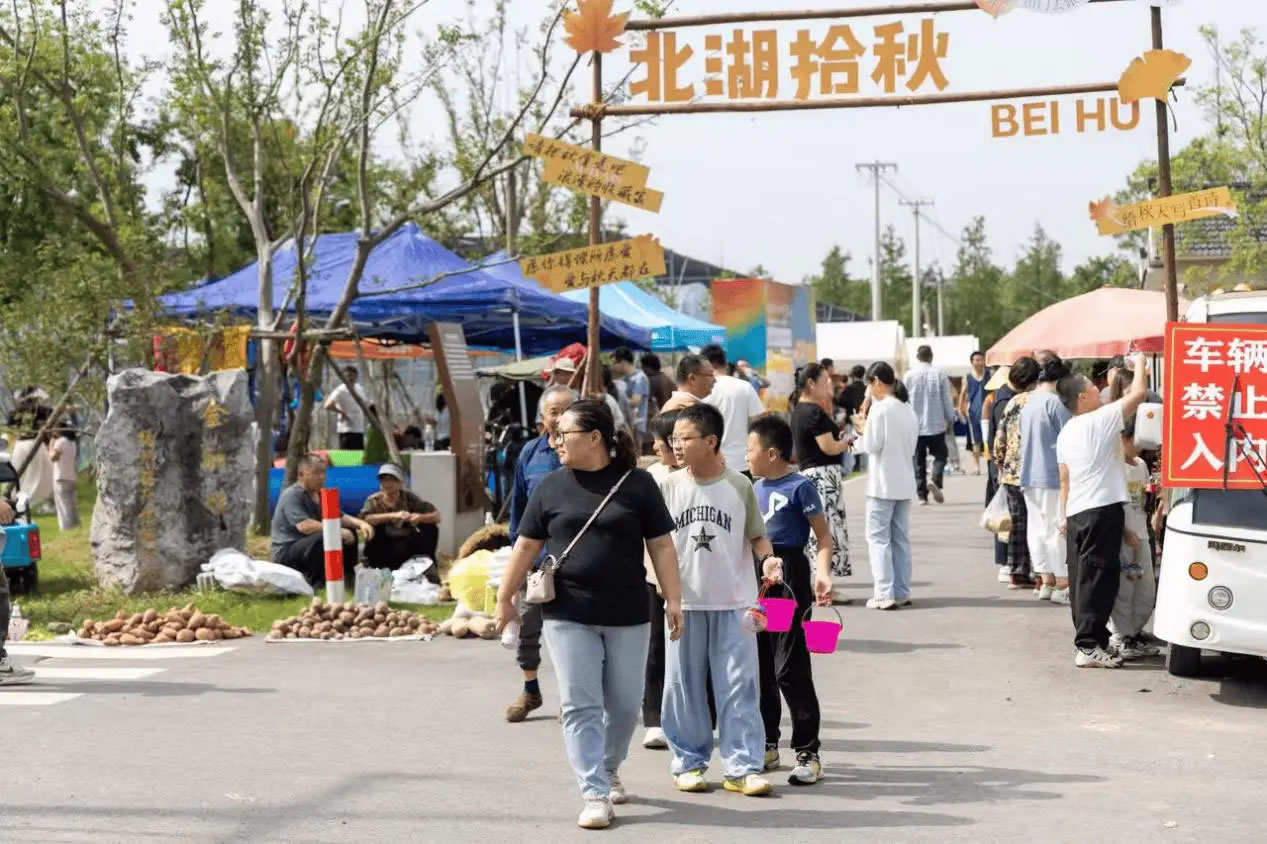 走進(jìn)利民村“北湖拾秋”活動(dòng)現(xiàn)場(chǎng),田園間的鮮活氣息撲面而來。39.9元游玩套票搭配手繪版《北湖漫游手冊(cè)》,成為游客開啟體驗(yàn)的“出行標(biāo)配”。手冊(cè)不僅標(biāo)注點(diǎn)位,更暗藏“集章抽獎(jiǎng)”趣味,而“蛋蛋王國(guó)”尋彩蛋、“吃雞獵場(chǎng)”抓活雞、“捕魚達(dá)人”撈小魚等互動(dòng)項(xiàng)目,讓親子家庭在追逐嬉鬧中沉浸式解鎖農(nóng)耕野趣;手作稻草人守護(hù)松茸田、非遺魚燈點(diǎn)亮秋日祈愿等“秋作”體驗(yàn),則讓游客在指尖創(chuàng)作中觸摸鄉(xiāng)村文化肌理。尤其是9.9元的“一米菜田”認(rèn)領(lǐng)計(jì)劃,既圓了城市人“躬耕田園”的向往,更通過“認(rèn)養(yǎng)+托管”模式為村集體帶來長(zhǎng)期穩(wěn)定收益,實(shí)現(xiàn)“游客得樂趣、集體增收入”的雙贏。