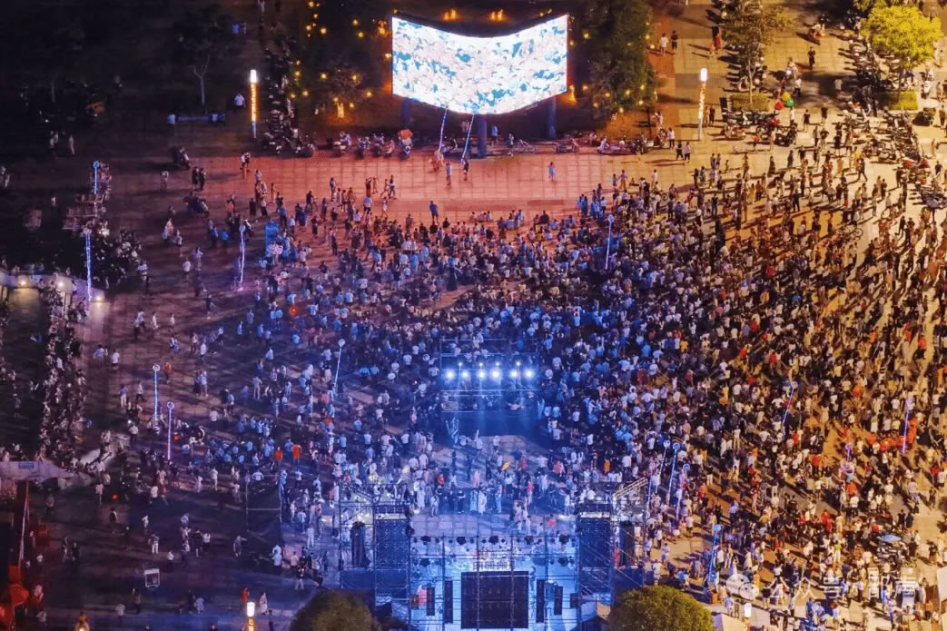 眾多市民通過邵陽市體育中心廣場上的5D裸眼LED電子屏觀看比賽(邵陽新聞網(wǎng) 供圖)