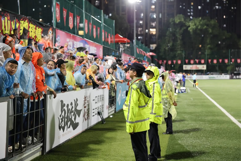 在此過程中,民警、輔警在嚴(yán)謹(jǐn)安保的同時(shí),還用心提供便民服務(wù)。期間,他們耐心幫助小球迷穿好雨衣、協(xié)助群眾尋找遺失物品、攙扶行動(dòng)不便者通過積水路段,用實(shí)際行動(dòng)為賽場增添溫暖。