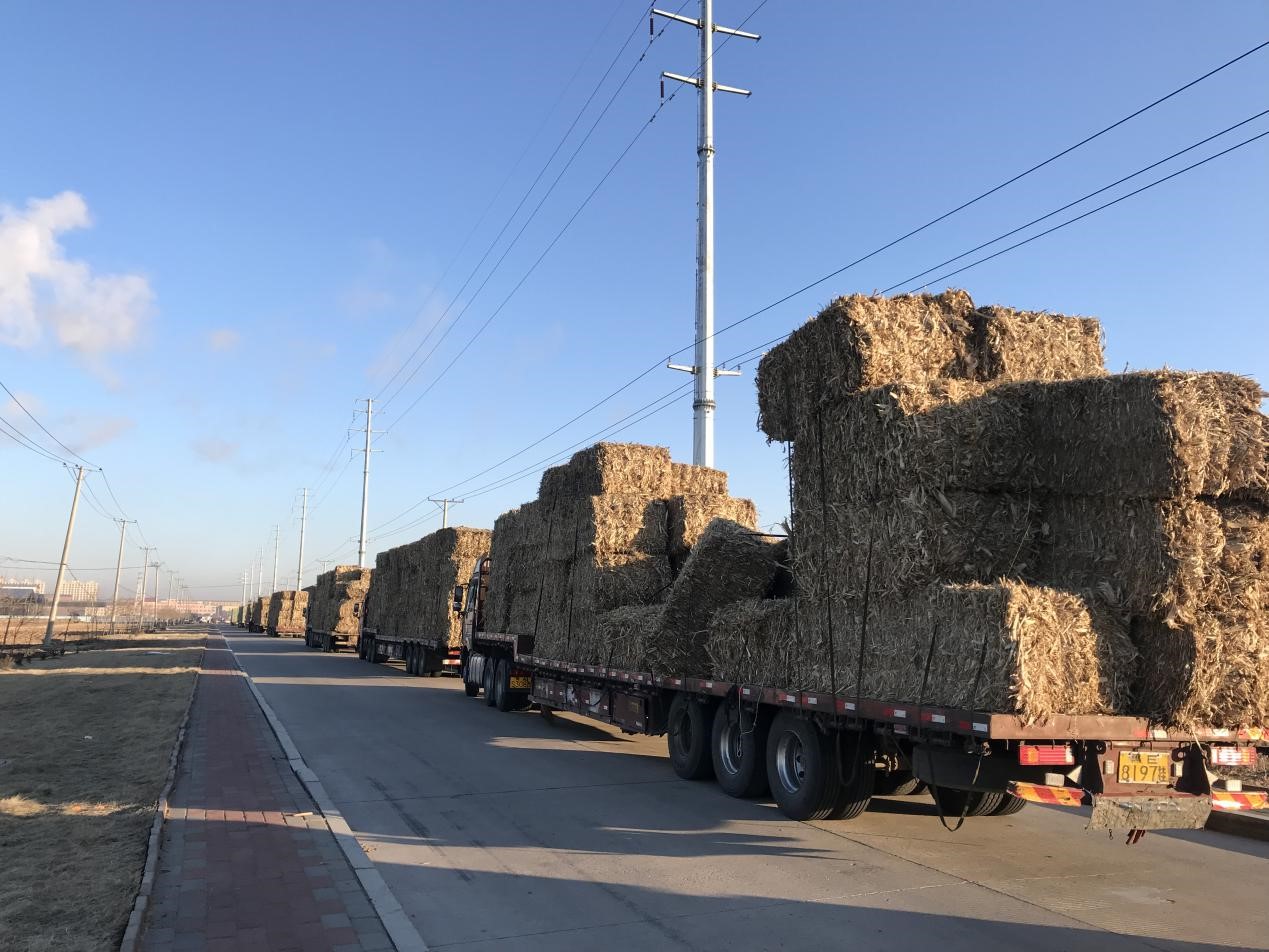 從早到晚,玉米、水稻秸稈源源不斷地運(yùn)往廠區(qū)