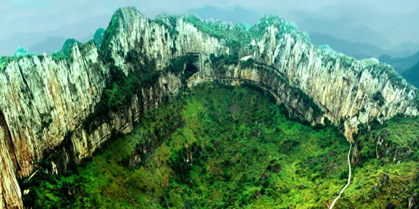 離后洞不遠(yuǎn),有一碗形洼地,為天然大漏斗(一種特定的地理現(xiàn)象),直徑650米,深208米,超過(guò)號(hào)稱(chēng)世界第一的美國(guó)阿里西波大漏斗(直徑330米,深70米),堪稱(chēng)世界一絕。興文天然大漏斗,被中國(guó)世界紀(jì)錄協(xié)會(huì)收錄為世界最大天然大漏斗候選世界紀(jì)錄。1935年,一名掉隊(duì)的紅軍小戰(zhàn)士,被當(dāng)?shù)胤磩?dòng)武裝俘后拋人洼心,故人們將此地一處石巖取名為紅軍巖。